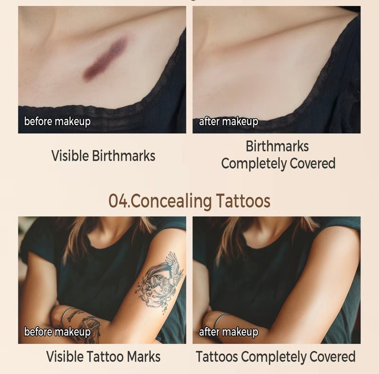 • Select 1–2 shades lighter when covering darker marks or tattoos.
